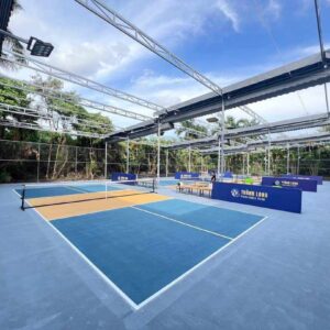 - Cho hồ bơi và sân chơi trường học: Tại các khu du lịch nghỉ dưỡng ở Hải Tiến hay Hải Hòa, mái xếp được dùng để che mát cho bể bơi, giúp khách hàng thoải mái bơi lội dưới nắng hè mà không lo cháy nắng.